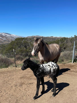 Storm arrived at the ranch pregnant with - later to become *Delilah Sparkle Bum*! This was her first breeding. She was an incredible, loving Mom to Delilah from the first moment; protective but calm.